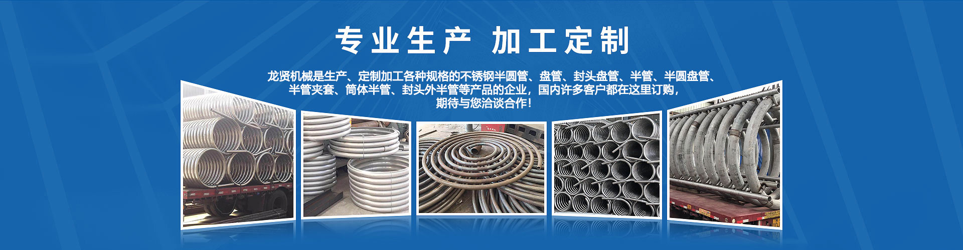 無錫龍賢機(jī)械制造有限公司生產(chǎn): 半管 半圓管 盤管 封頭盤管 外半管 半管夾套 封頭外半管 不銹鋼半圓管 304不銹鋼盤管等